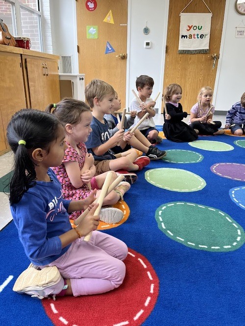 Each class at CPP has the opportunity to come to music and movement class weekly (2's and 3's once a week, Pre-K classes twice a week). Every week in the music room is different! We sing, dance/move, play rhythm instruments, and learn basic music concepts and terminology. We hope to inspire a love of music in your children!